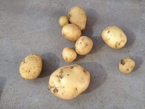 プランターの葉っぱが枯れ始めてたので掘り返してみたら、 新じゃがくんがちょこっと出てきた。 直径50cm・深さ50cmくらいの小さめのプランターだけど、 保水力がよかったのかしら。 ほとんど放ったらかしだったから。。 こいつやる子だわー これはもう掘り…